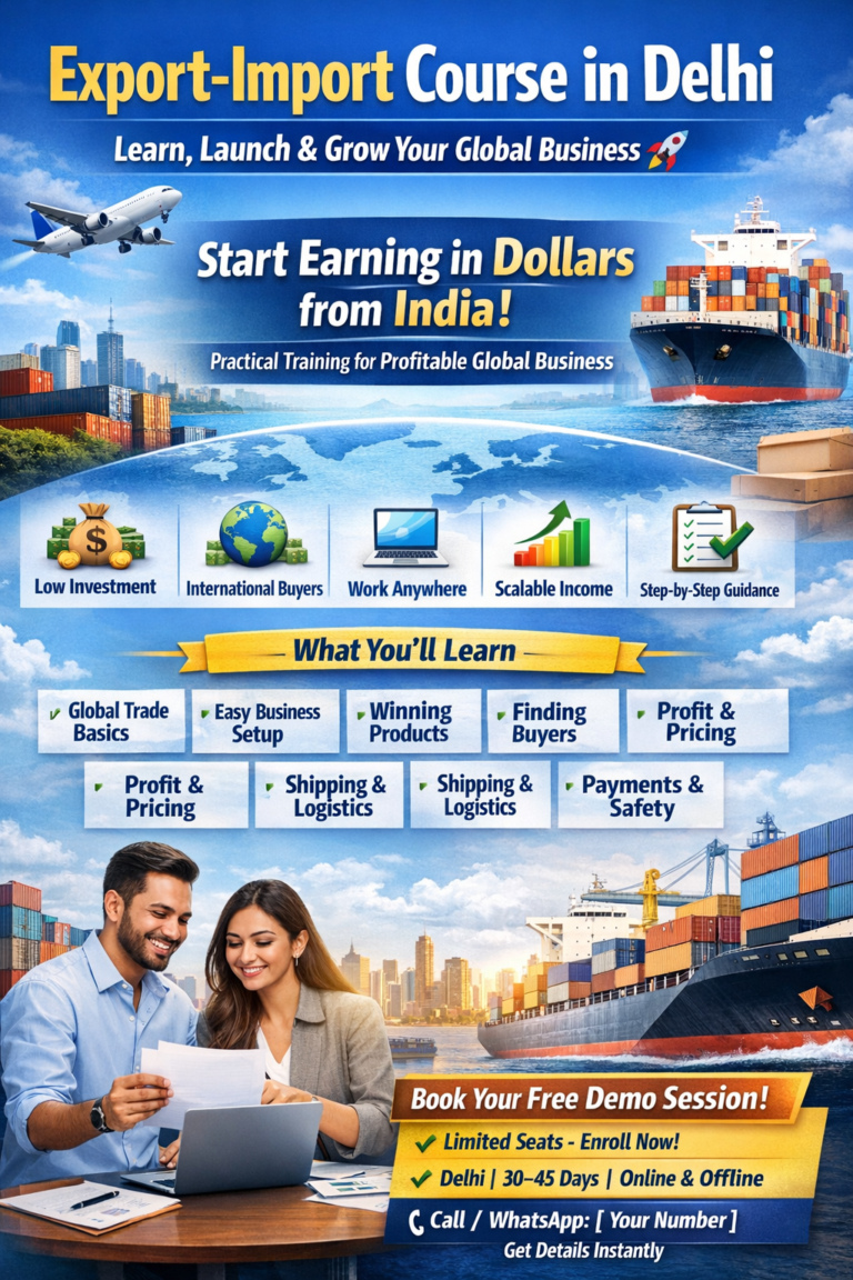 Blog Export-Import Course in Delhi SupportMarch 25, 2026March 25, 20260 Start Your International Business Journey Today 🚀 Want to earn in dollars 💵 while sitting in Delhi? Our Export-Import Course…